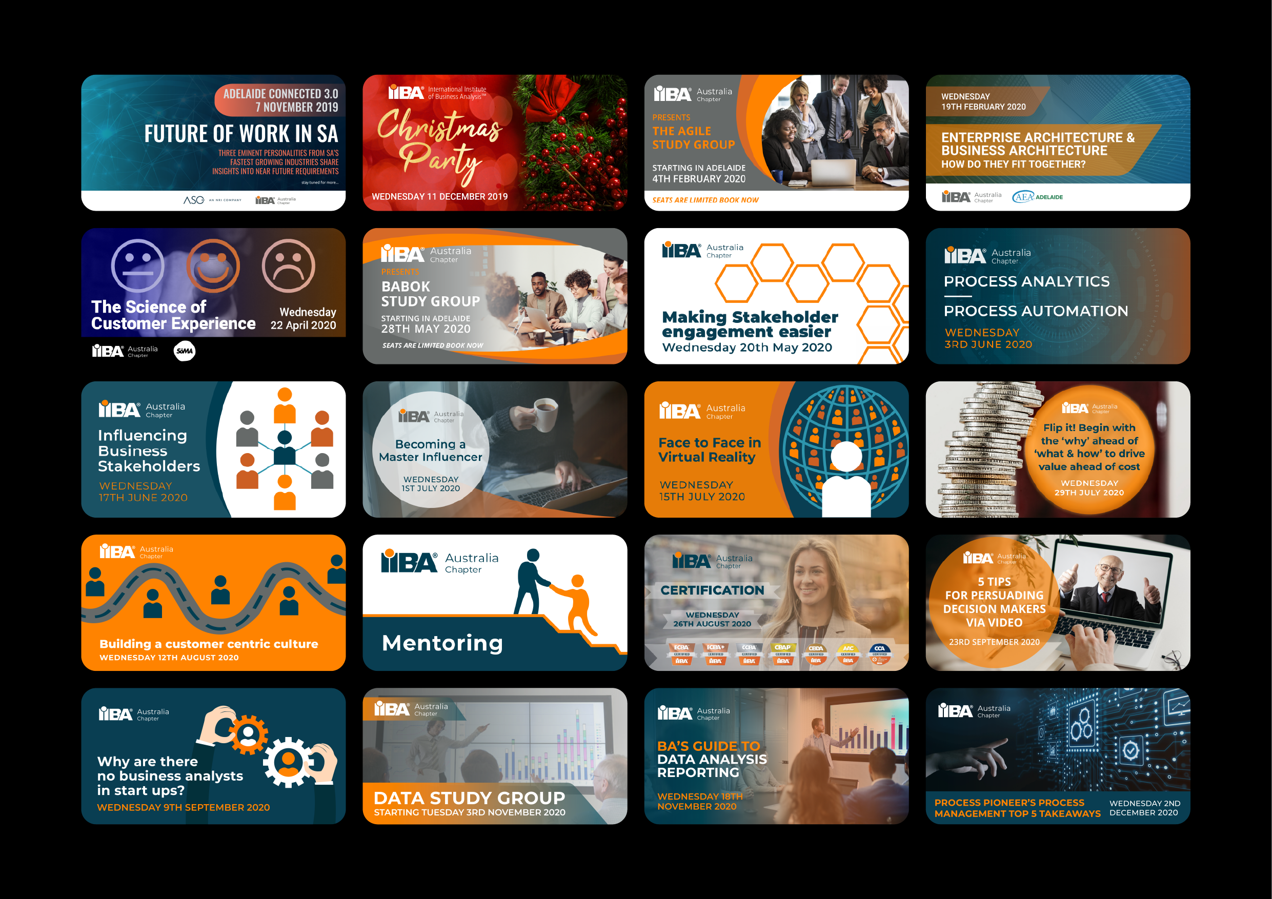 The International Institute of Business Analysis holds a yearly conference called Business Analysis Professional Day uniting business analysis professionals from around the world. I created digital advertisements, signage, print materials and merch for the 2019 event.