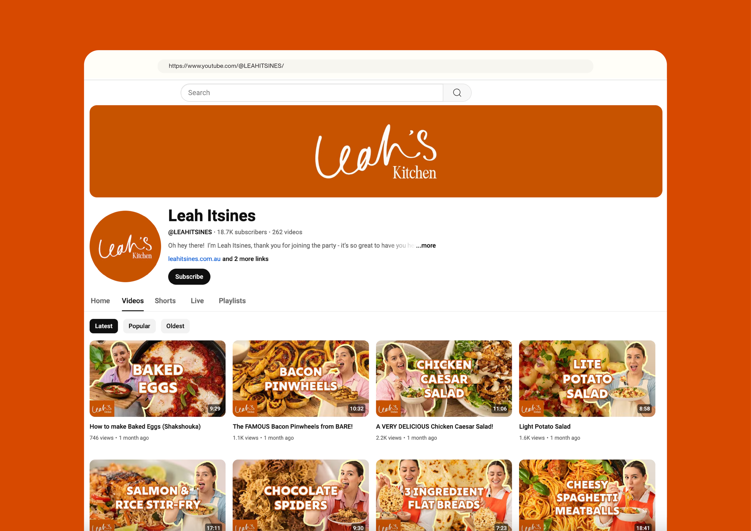 Leah’s Kitchen is a YouTube series created by Leah Itsines, featuring easy-to-follow recipes that are both delicious and nutritious. After developing nutrition guides and sharing recipes across her social platforms, Leah wanted to expand into a longer-form video format that her audience could access freely.